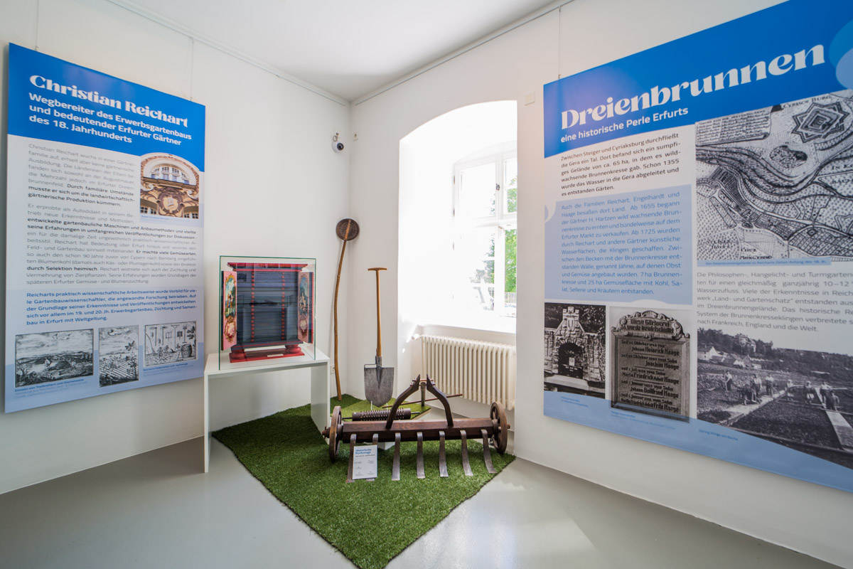 Sie sehen nachfolgend Fotoaufnahmen aus der Ausstellung „Kultiviert – Ein Jahrtausend Gartenbau in Erfurt“ welche in den Jahren 2021 und 2022 im Deutschen Gartenbau Museum auf der ega zu sehen war. Im Raum 1 des Ausstellungsrückblicks finden Sie weitere Informationen zu Christian Reichart und erfahren wo in Erfurt mehr seiner Errungenschaften und zur Person zu erfahren gibt.